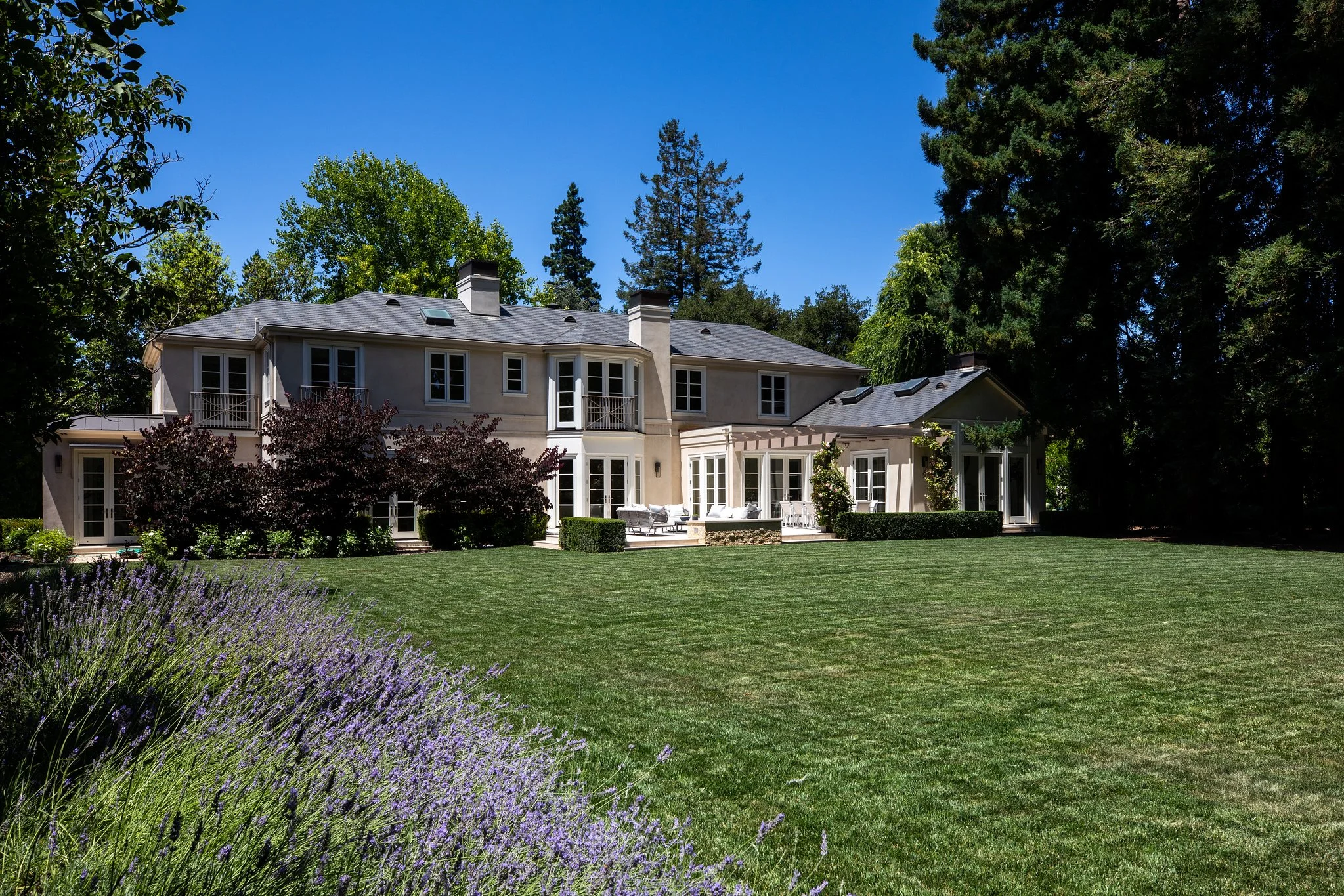 • Upstairs primary suite has a customized closet room, bedroom with three balconettes, and en suite limestone bath