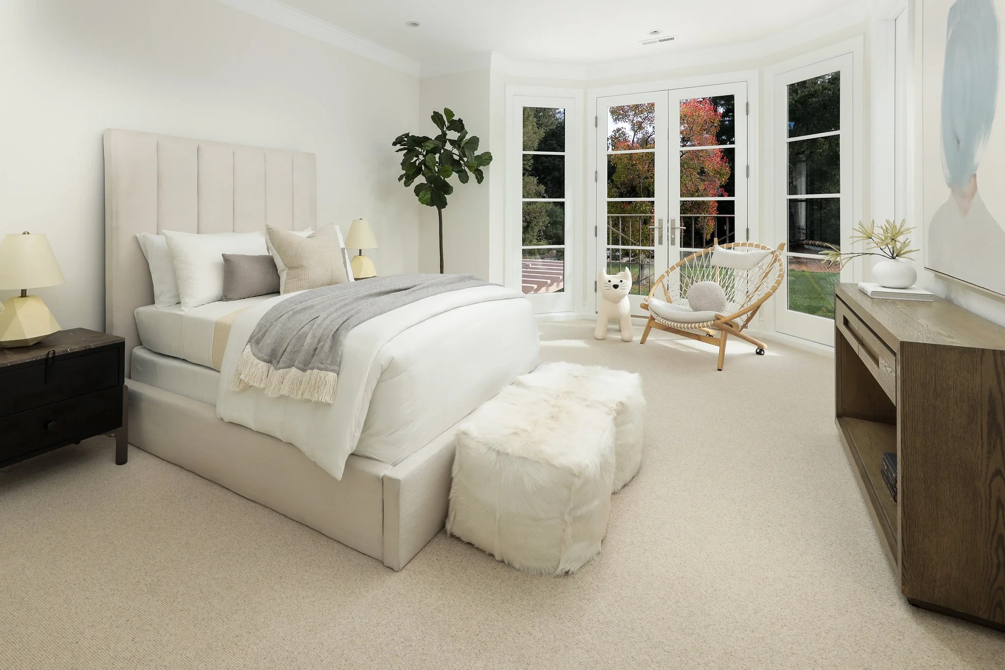 • Refinished white oak floors with a natural matte finish; new carpet in the bedrooms